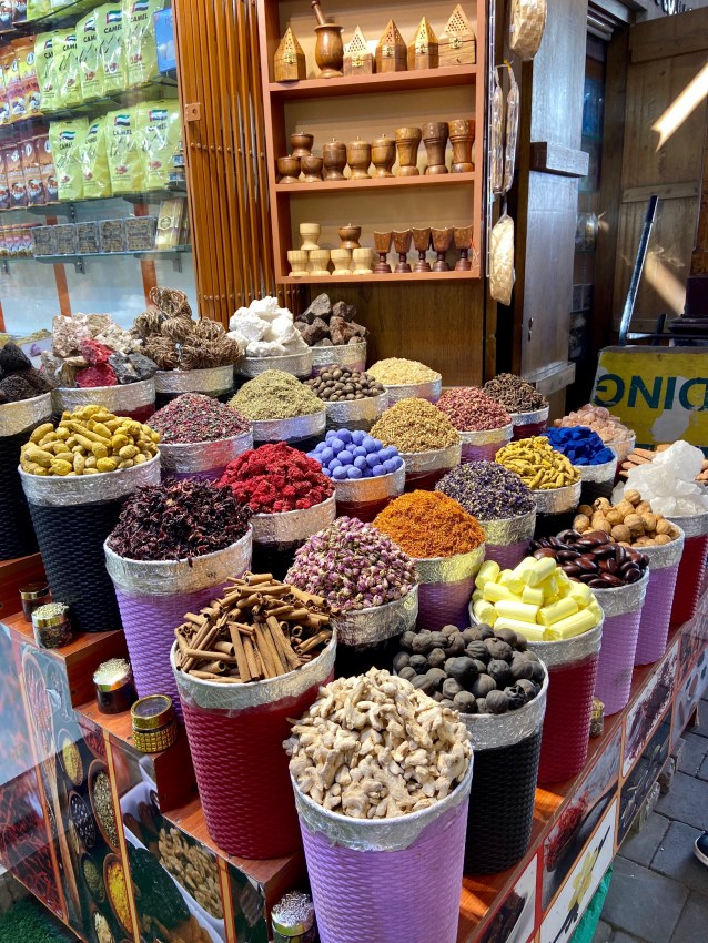 We tried to balance our holiday with staying on the hotel grounds enjoying the amenities and heading out to explore Dubai. It was easy to get sucked into staying at the hotel because there was so much to do but we felt like it would be a huge miss to not see what Dubai had to offer. On Christmas Day we jumped in a taxi and headed into Dubai to check out the gold and spice markets. Our senses were overwhelmed with all of the smells, colors and vibrant energy. I loved it. Seeing all of the people bartering, buying and selling was so much fun. After the spice market we took at boat across the Dubai Creek which at one time was the pulse of the trading market. We tried to envision what Dubai must have been like when it was first settled in contrast to the glass skyscrapers and ultra modern city that we were experiencing.