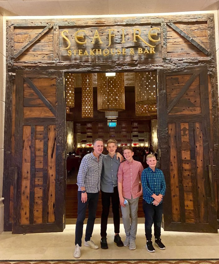 Sadly our week came to an end and it was time to head home. Our flight didn’t leave Dubai until 2:00 AM which actually worked out great because we were able to enjoy the hotel and amenities all day. Scott and I lounged at the pool and the boys had one last whirl at the waterpark. The day ended with a last meal at the Wavehouse and then we headed to the airport and back to reality. Dubai is definitely worth a visit. It is like a really fancy Las Vegas in the Arabic desert with delicious food and top notch service. It was sure nice to warm our bones and be spoiled rotten for the week!