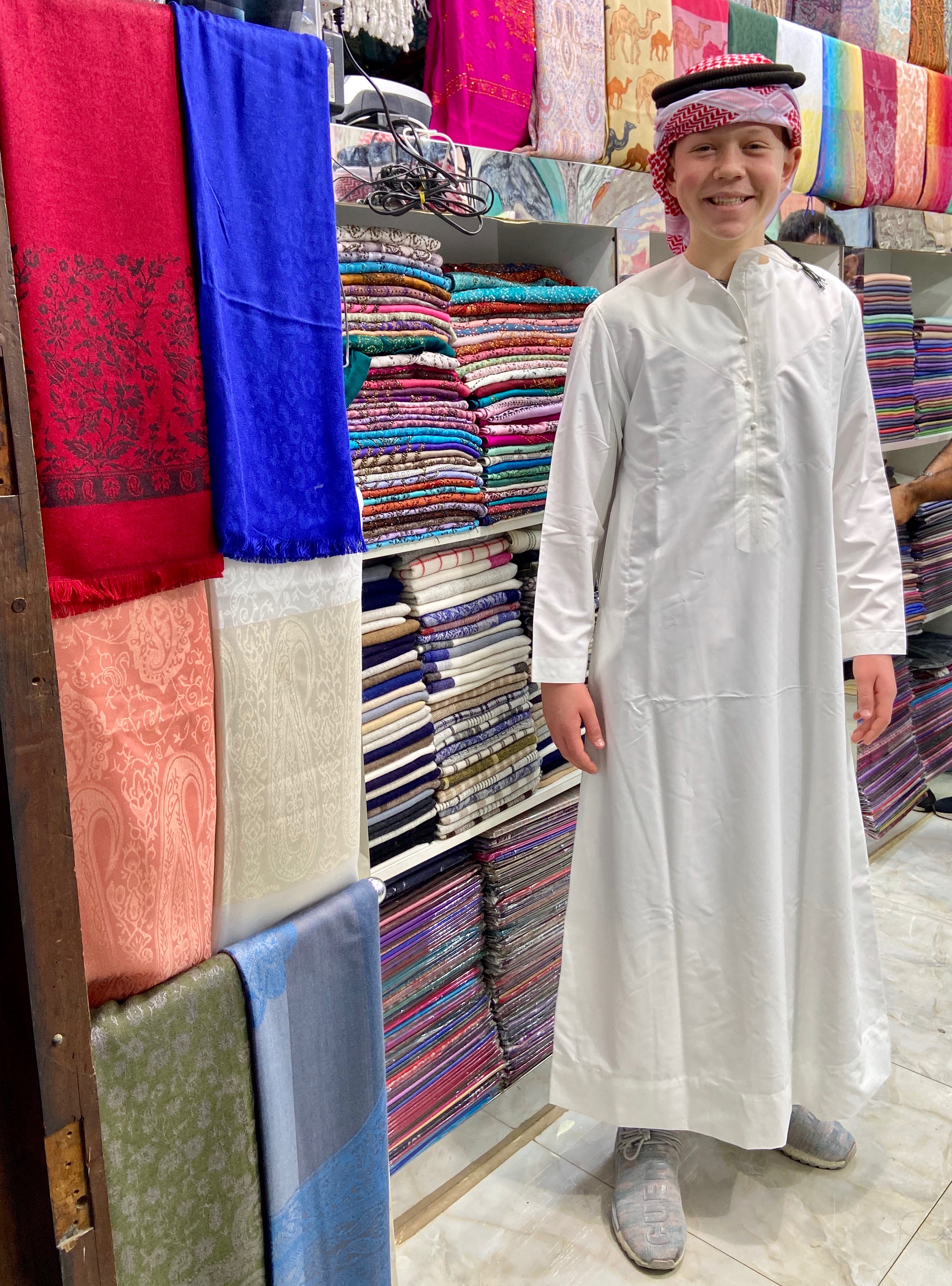 We landed in Dubai at 9:30 PM (they are three hours ahead). American citizens are required to have a Visa to enter UAE and you can get that free at the airport when you go through immigration. For the most part getting through customs and immigration was a breeze. It’s never a problem with the officials, it’s always my boys who turn into little assholes no matter what. The ten minutes that everyone needs to be serious, keep their hands to themselves, present their passports, look the officials in their eyes and answer questions seems to be the time my kids are at their worst. We always manage to get through but not without tempers flared and threats of “maybe we will just go home!”.