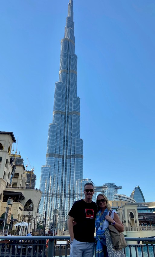 We explored the markets on the other side of the creek and then decided to head and check out the tallest building in the world – The Burj Khalifa. The Uber ride was fairly painless and within 20 minutes we were standing at the base of the magnificent building. I hadn’t done much research on touring the building, just knew that we had to see it so we really didn’t know where to start. We quickly realized the Uber driver had dropped us on the other side of the Burj Khalifa and we had to go in through the Dubai Mall in order to access the building. Duh! Well with it being Christmas Day the mall was packed and the line to go up to the observation deck was forever long (I should have bought tickets online!). We had a family vote and it was 4-1 to admire the building from the ground with plans to return someday and go to the top. I felt like it was a miss but my boys felt a huge victory as we pulled an audible and let them choose their favorite fast food to eat from the mall food court. This is not a “luxury” we experience often in Germany. Two went with KFC one feasted on Subway. Not my vision for our Christmas lunch but you can’t win them all!