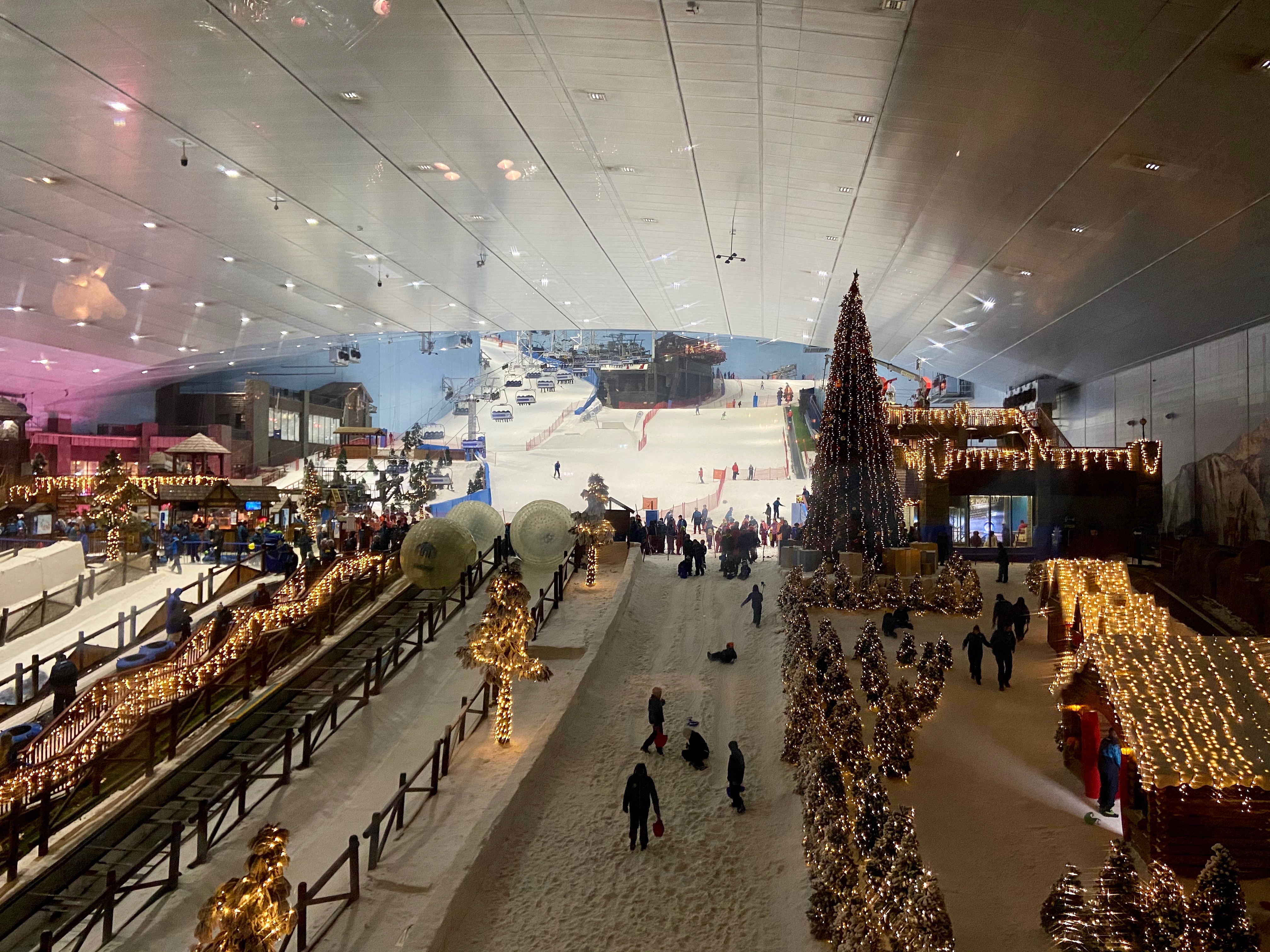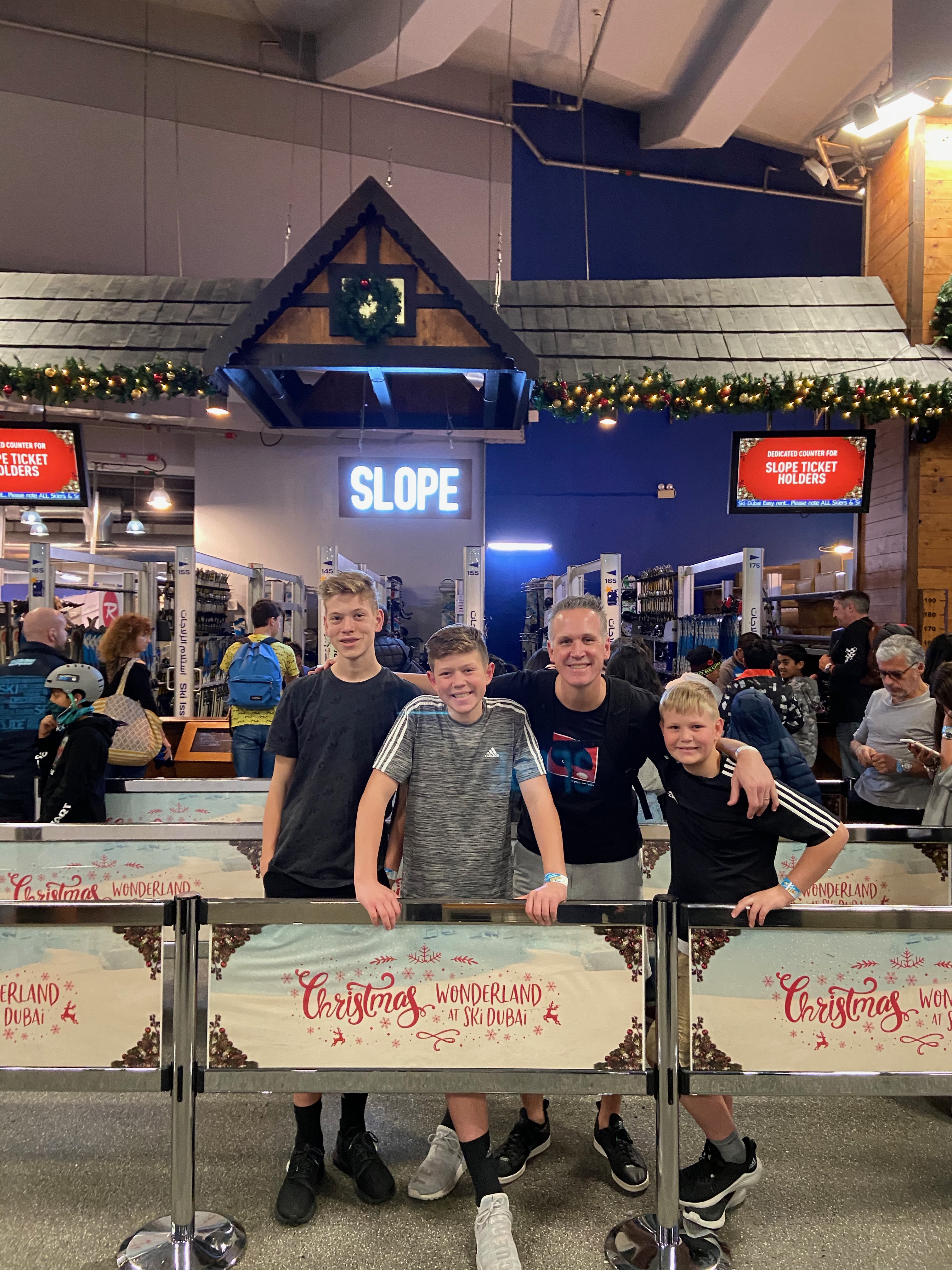 At this point I knew I had pushed my crew a bit too far with the sightseeing so we headed to the Mall of the Emirates where we had booked an indoor skiing session for the boys at Ski Dubai. For real. They were skiing on Christmas Day in a mall in Dubai. We reserved our tickets online and it was a pretty easy process. After check in we went to equipment rental where they picked up their coats, boots, helmets and skis. Changing out of their shorts into the ski pants they strapped on their boots and hit the slopes. They had a blast skiing for two hours and I had my own fun explore the gigantic mall. Win-win.