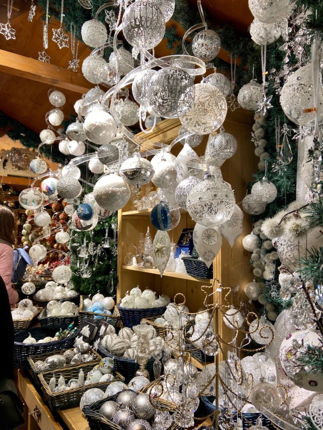 Ok…I can’t even begin to describe how special this market is. I was blown away in Vienna, however, this market takes the top spot as my absolute favorite. The booths are big and spread out nicely so it feels like there is plenty of space and no rush. There are indoor places to eat with different themes and menus and are a nice place to warm up and rest your legs. There are also “bar” areas set up with open fire pits and plenty of drink options. The inner courtyard of the palace is decorated with a beautiful Christmas tree and open fires to keep warm and of course lined with more booths. One of the coolest features is the champagne hut that is located up on a little hill that overlooks the palace and has specialty cocktails. We loved sitting up there sipping fancy cocktails and watching the world go by below at the market. The quality of the vendors is top notch and for sure a step up from the more traditional offerings at other markets. We enjoyed the variety of shopping and buying gifts and goodies.