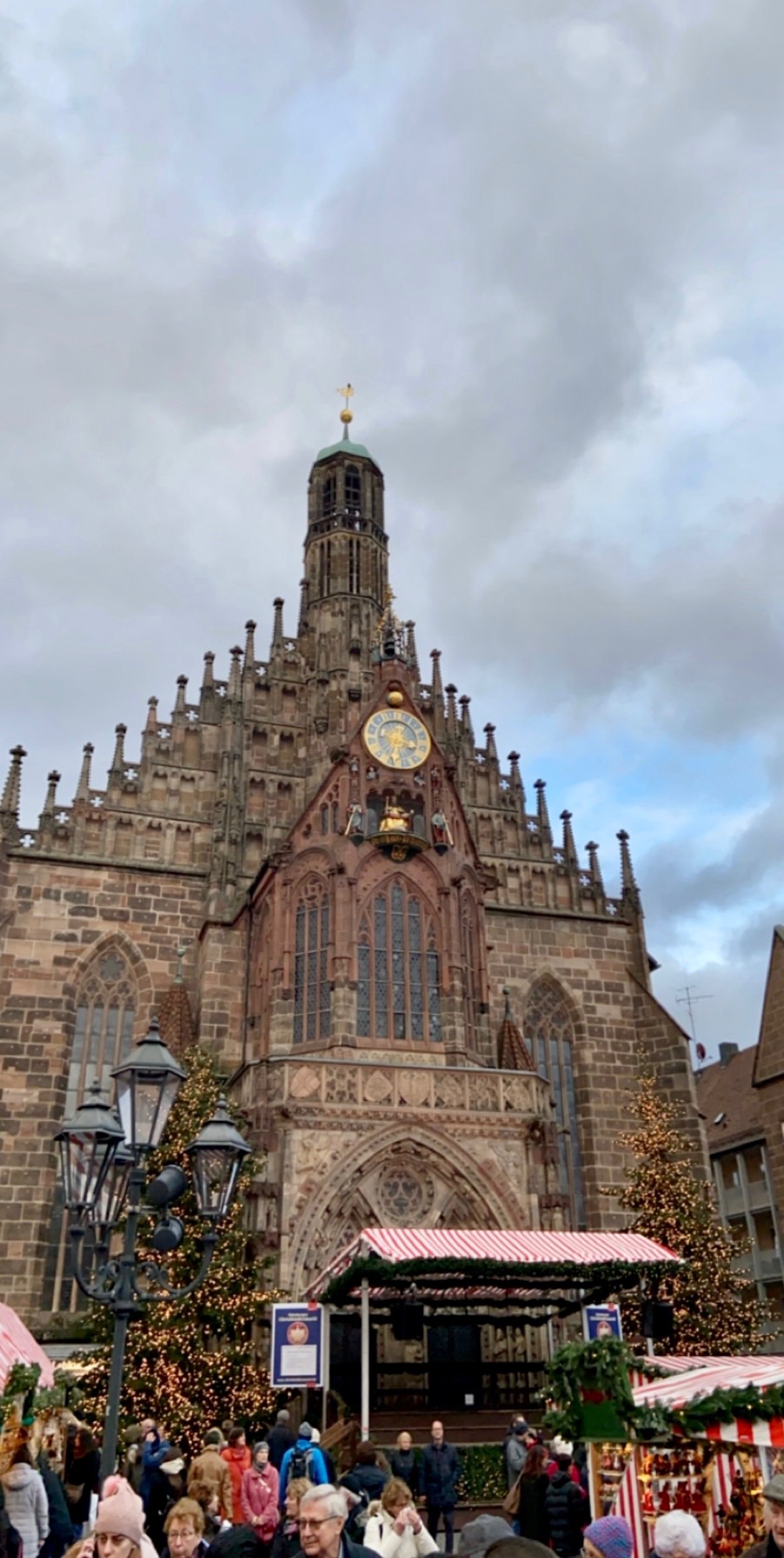 Nuremberg is a quick 20 minute train ride from Erlangen and hosts one of the biggest Christkindelsmarkt in Germany and most famous in the world. The train station is directly across from the old town of Nuremberg and walking through the old walls into the city is quite dramatic. My favorite way to enter into the old town is over the bridge and through the Handwerkerhof Nürnberg which is a small medieval area with shops and restaurants. It is a charming area and sets the tone for discovering Nuremberg and its fascinating history. Once you pass by the Frauentorturm (one of the four round main towers of the Nuremberg city fortification) start looking for the red and white striped tents that will lead you to the Christmas Market which takes place in the Hauptmarkt, the central square in Nuremberg’s old town, and in adjoining squares and streets.