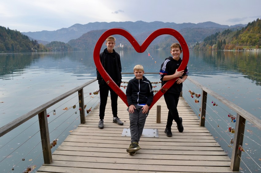 On our drive to Lake Bled we took at detour and stopped in Kranjska Gora at the Planica Nordic Center. The boys wanted to check out a zip line that is claimed as “the steepest zipline in the world”. It goes over the Planica Large Hill, the biggest ski flying hill in the world. After checking it out, they weren’t 100% sure that they still wanted to go but tickets were bought and our time was reserved. I offered to be the photographer and opted out of the zip lining adventure. We had a couple hour wait so went on a short hike and were struck by the beauty of the rugged mountains surrounding us contrasted by the fall colors. Antsy to get back to more exciting activities, our hike was cut short and we headed back to the Nordic Center to check in for the zip lining. Harnesses were fitted, helmets were distribution and we were on our way. A chair lift took us to the top and that’s when nerves started shaking a bit. I do have to say it is pretty darn high. All I could think of were the athletes who stand up there with skis on their feet and over and over decide to make the jump. Definitely a new appreciation for the sport. Scott went first and I knew he was scared silly. He hates height but he put on a brave face and took the leap. One by one they all went down and I met them at the bottom all smiling ear to ear pumping with adrenaline. Definitely a parenting win and good start to our “what are we going to do in Slovenia for week” adventure. Packed back in the car we had a short 45 minute ride to Lake Bled, our home for the next few days.
