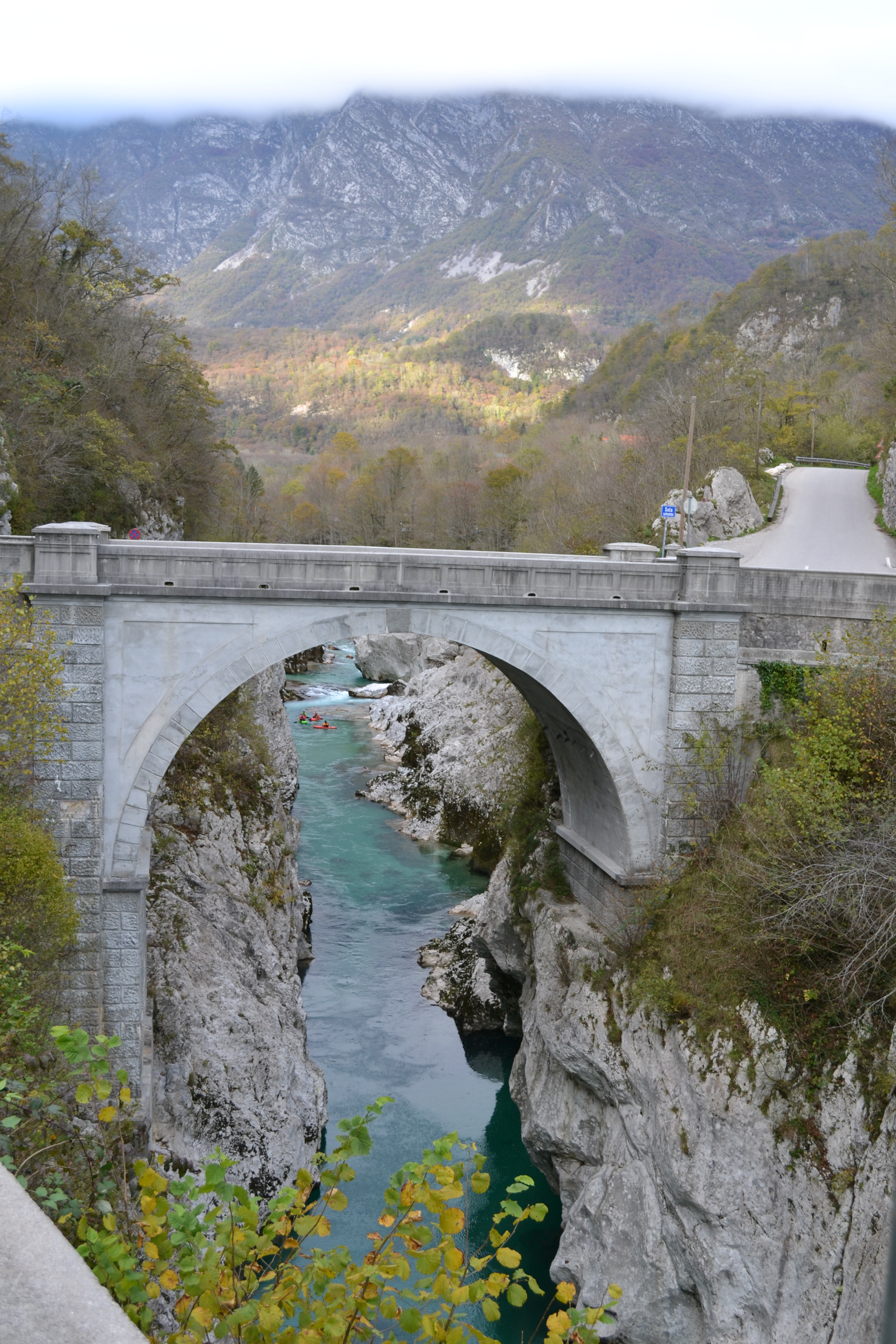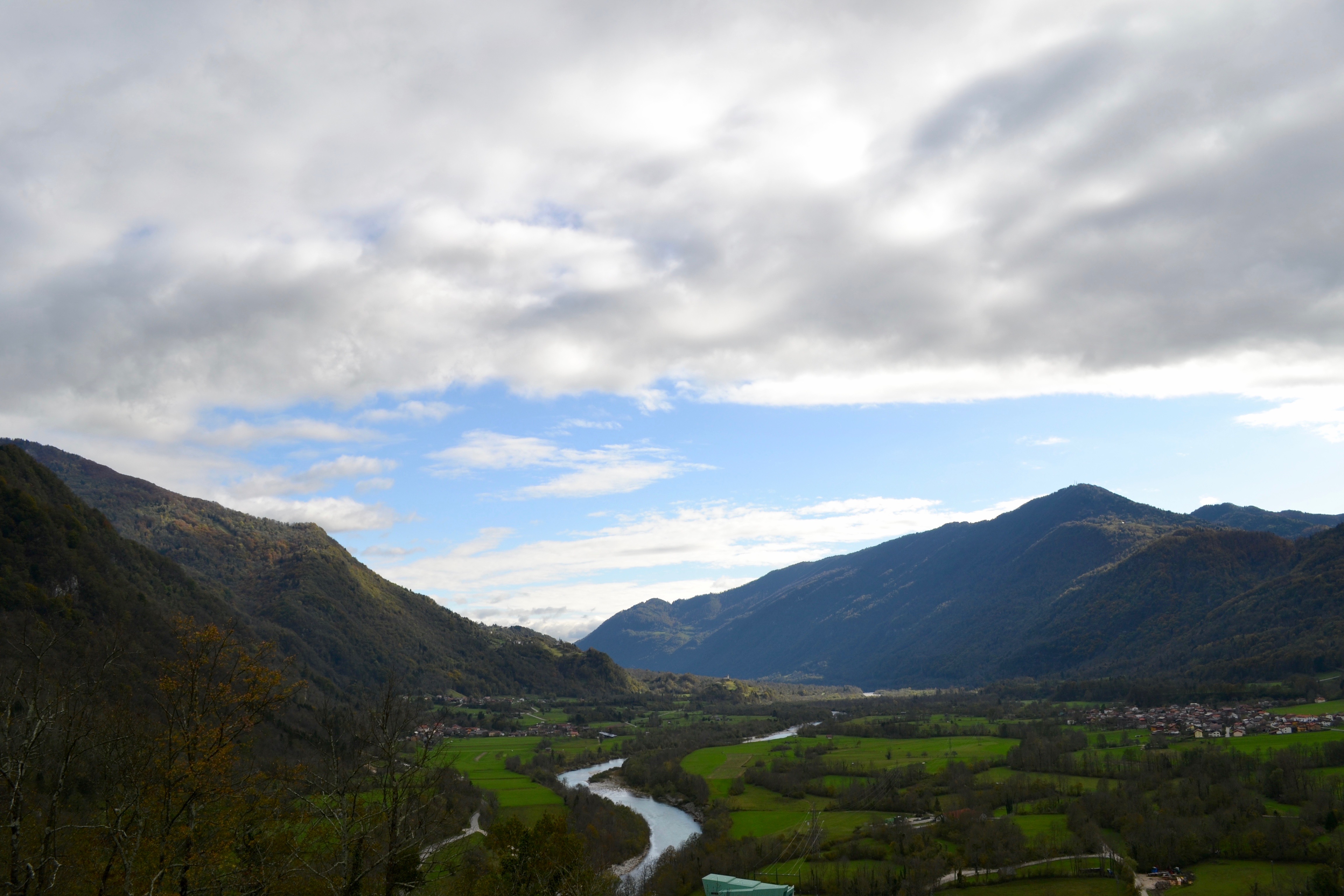 We woke up Wednesday morning ready to hit the road for Kobarid. The direct drive was around two hours but we decided to go a bit off the planned route and spend some time at Lake Bohinj on the way. The scenic drive to Bohinj took around 30 minutes. We quickly parked and took a stroll down by the lake. The sky was overcast and a perfect compliment to the fall colors surrounding the stunning lake that looks untouched by man. After a little break we jumped back in the car and headed toward Slap Savica a beautiful waterfall about a ten minute drive past the lake. We parked and took off on the 25 minute pretty much straight uphill hike to the waterfall. The hike is beautiful and well worth the many stone steps it takes to reach the peak. We paused at the top admiring the gorgeous waterfall and then were quickly reminded about the crêpes we had promised the boys at the end of our hike. At the bottom of the trail we settled into a nice table by the fireplace at Koča pri Savici a little mountain lodge and restaurant. The crêpes were yummy, coffee was hot and it was good to warm our bones. We still had a bit of a drive ahead of us and the day was slipping away so we decided to get back on the road. We didn’t make it too far, I’m talking maybe 20 minutes, as the bandaid of the crêpes wore off and the crew was hungry. We pulled off in Polje a village outside of Bohinj and ate a late lunch at Pr’ Pristavc a darling little pizza restaurant located in a hostel/pension. Our waitress was so friendly and the pizza was seriously good. Slovenia is located a stones throw from Italy and shares many of the same flavors. We ate a long slow lunch and were finally back on the road to Kobarid.