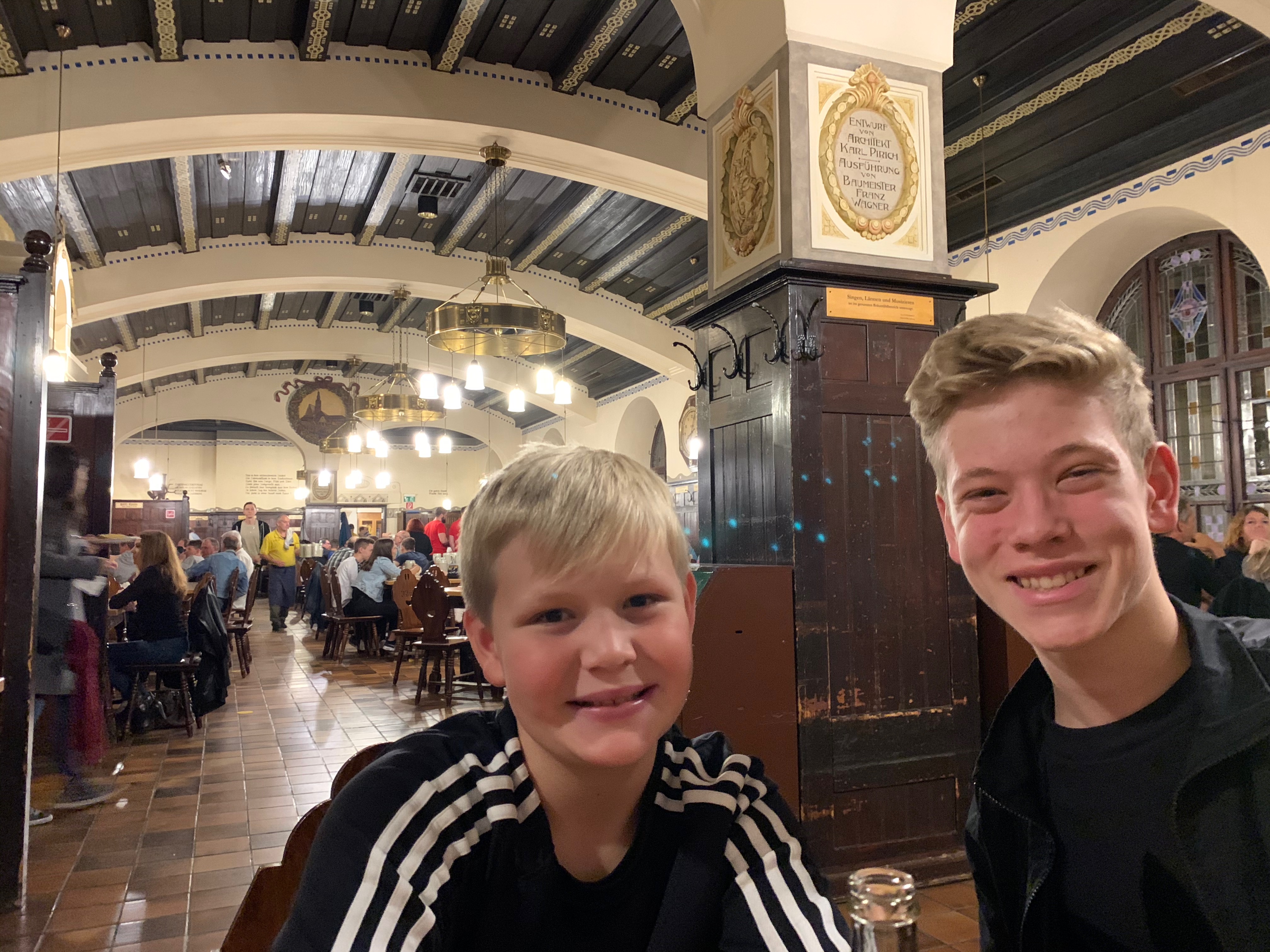 We took our time strolling the cobblestone streets on our way to the brewery stopping to play chess on the giant board located in the Kapitelplatz. By the time we made it to the Augustiner Bräu the boys were “starving” and we were dangerously close to things going ugly. An interesting thing about traveling in Germany and Austria is that everyone shares tables. In these large beer halls it is quite acceptable to walk up to a table and ask to join. Talking to strangers is not in my comfort zone but luckily I have a couple of extroverts in my family who like the challenge. Even though the Augustiner was packed being a Saturday evening Scott was quickly able to locate a family that looked like they wouldn’t mind our company even with the “I might die soon from hunger” looks on my boys’ faces. They nicely gave up five chairs, dinner and drinks were purchased and everything was back on track.