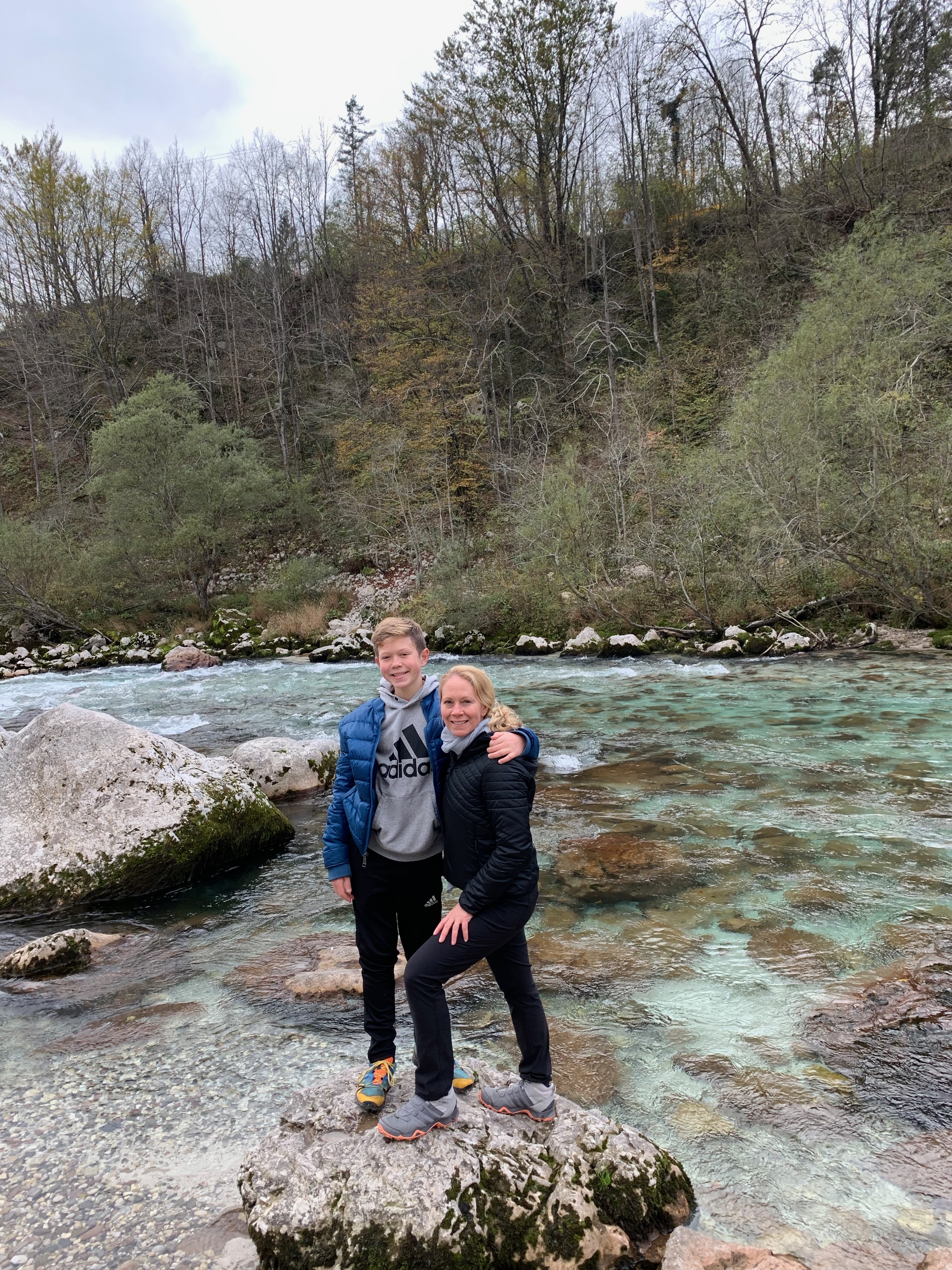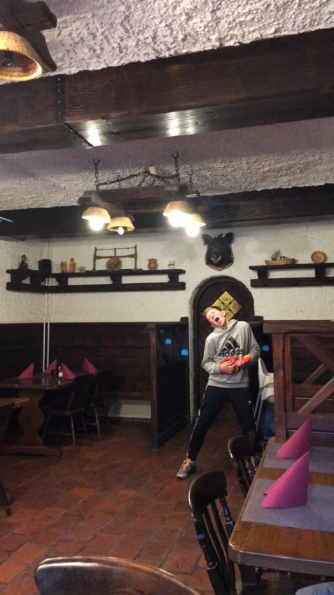 Monday morning we woke up ready to hit the ground running. Scott and I walked to the bakery to pick up coffee and treats to bribe the boys to get up and fueled for our morning hike through the Soteska Vintgar a gorge located ten minutes from Lake Bled. The gorge is breathtaking. We had a nice hour long hike and then back to our apartment to regroup and grab lunch. The boys were hungry for burgers so we headed to Promenada Burger close to the lake. They voted the burgers the “best they ever had” (which seems to be any meal they eat right now) so I knew they were content and would be tolerant of my plan of taking the cute little boat ride out to the The Pilgrimage Church of the Assumption of Mary (the church in the middle of the lake). You can either rent a row boat and paddle yourself out of pay to ride in a Plenta – a large gondola like row boat. We chose the Plenta and were able to just walk up and jump on a boat getting read to depart. The Plenta takes you to the base of the small island and give you an hour to tour which is plenty of time. We enjoyed walking the grounds and taking a pause to enjoy artisanal ice cream served at the gift shop. After the Plenta dropped us back to the shore we trekked up to the Bled Castle to get a glimpse of the lake and church from above. It is an easy 15 minute walk up to the castle and the view is totally worth it. The castle is small and packed with great information about the region, a nice gift shop, restaurant and outdoor cafe that serves delicious hot chocolate. Closing out our busy day we hiked back down to the apartment and grabbed Döner sandwiches for the boys on the way as Scott and I had planned an evening out. After the boys last “feeding” of the day it was adult time and we set out for the ten minute walk to Old Cellar Bled where we had a three course meal and wine pairing waiting for us. We loved everything about Old Cellar Bled. The ambiance, the food, the wine, the service. It was all great and a perfect end to a long day.