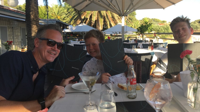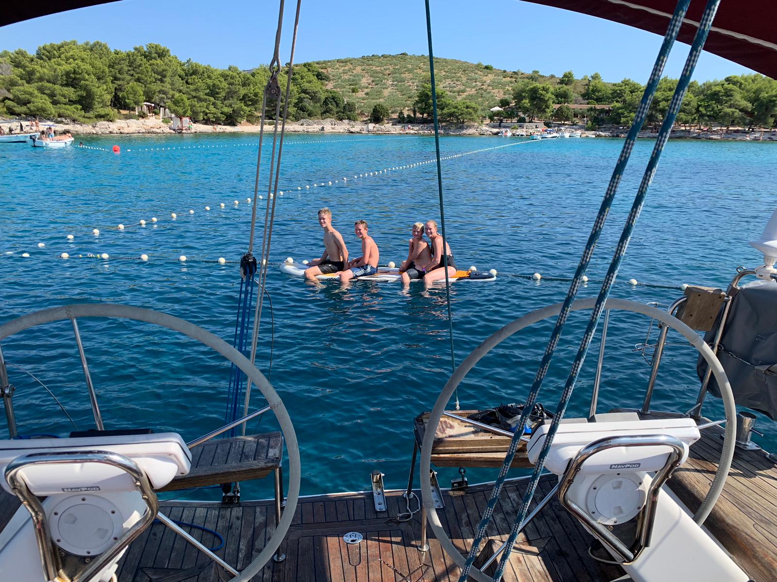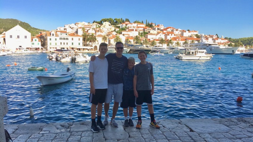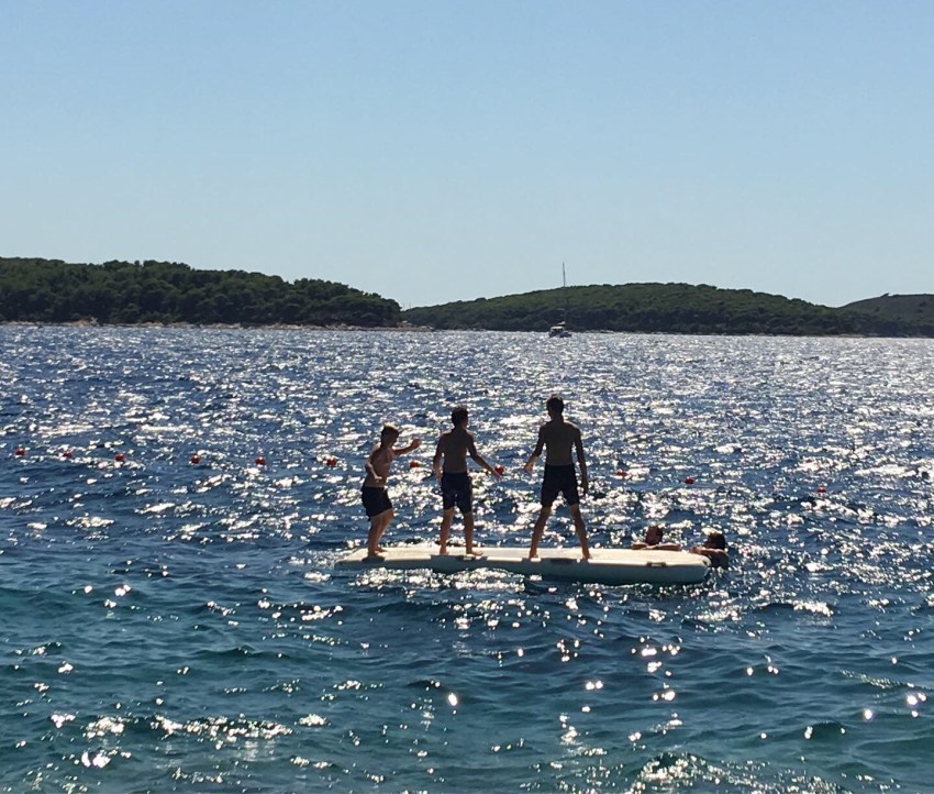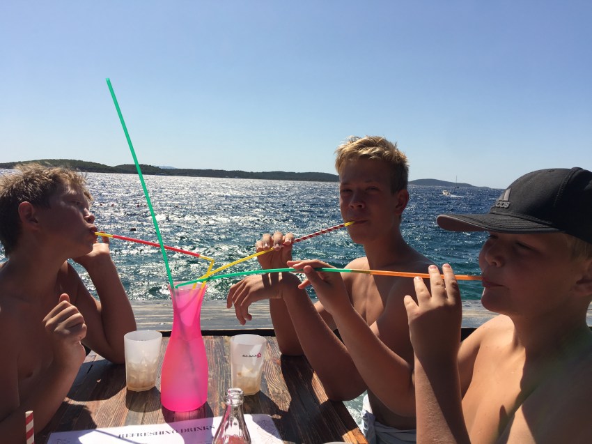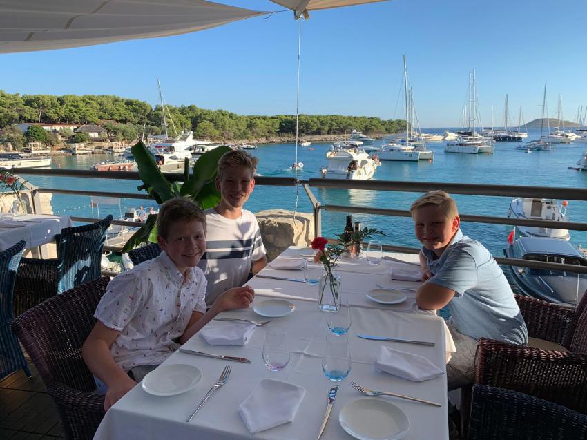 I booked a 1/2 day private sailing tour through the Paklinski Islands through Sailing BARE and it was hands down one of the coolest things we did in Hvar. Captain Edi picked us up in the harbor and we set out on our adventure. He wasn’t so thrilled because the wind wasn’t as strong as he liked, however, we really had no expectations and truthfully were just excited to be on the water. Cruising through the islands on a sailboat is a super cool experience. The world slowed down a bit and we were able to take in the scenery and enjoy the stories from Captain Edi. He was born and raised on Hvar and has a wealth of knowledge and history and is passionate about sailing and the water. Part way through the sail we took a nice rest in Vinogradisce Bay (same bay where Zori is located). Edi provided a huge bowl of fresh fruit as well as snorkel and paddle board equipment. We had a nice swim and took the paddle board to the little beach bar for ice cream and of course a cold beer. Captain Edi was so good with the boys quickly taking to Cal and generously sharing sailing tips and the steering wheel. Honestly if you do anything in Hvar, book a trip with Captain Edi and sail the islands. It is very special and one we will never forget.