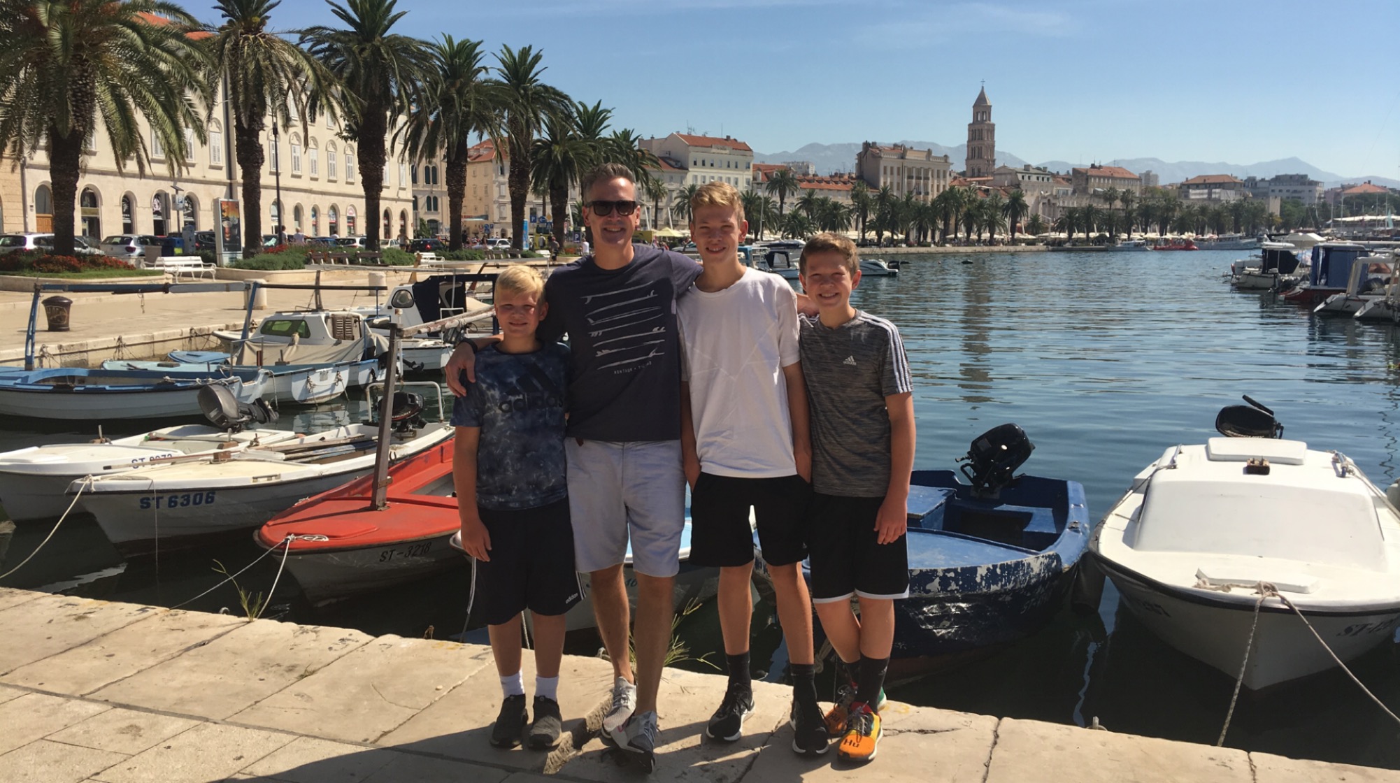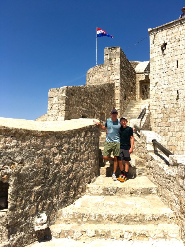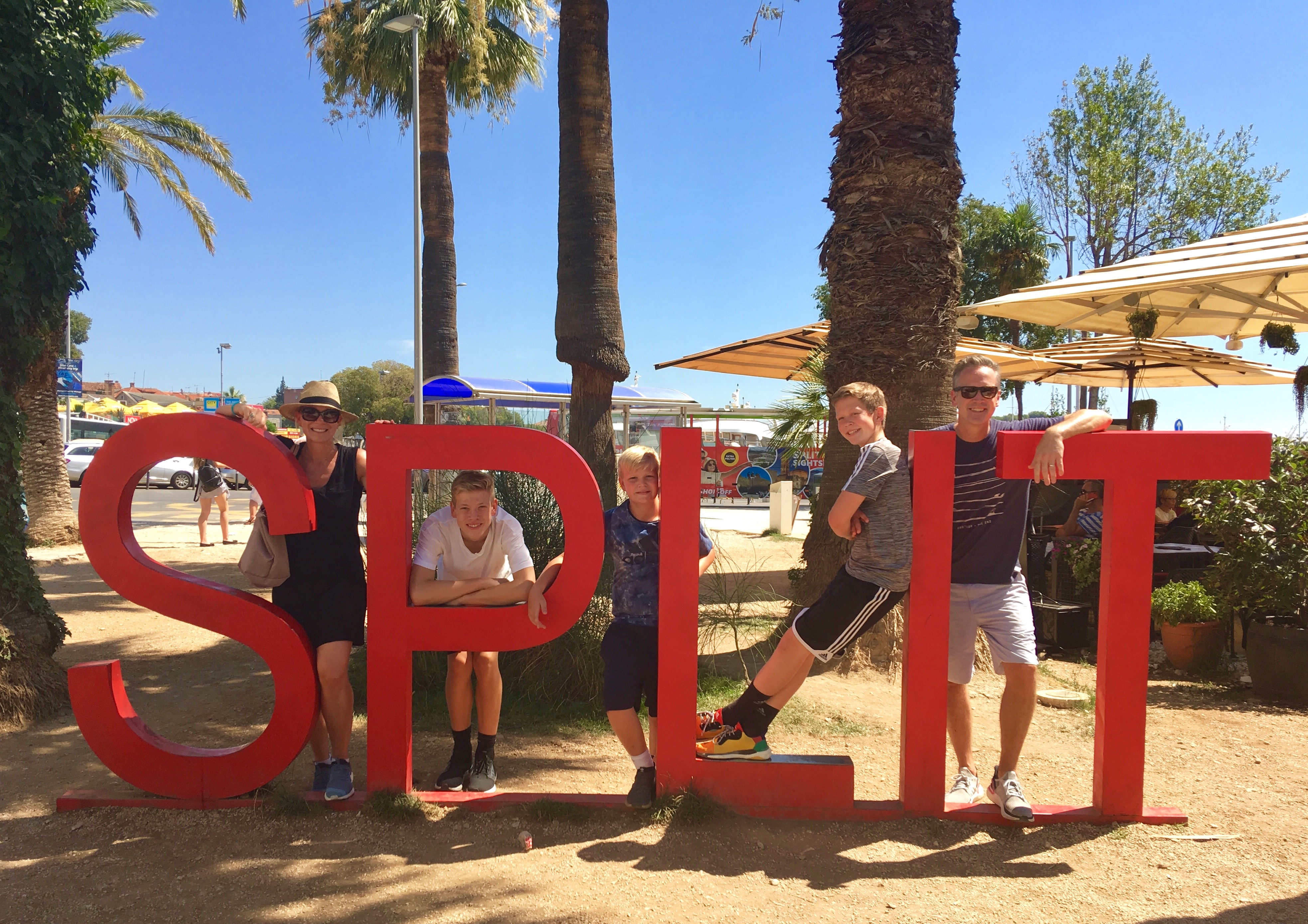 I booked us to stay one night in Split at the Hotel Slavija before taking off for a week on Hvar. The hotel arranged a transfer for us which was great because parking in the city center of Split is very limited and the hotel was located smack dab in the city center. The drive from the Split airport to Old Town Split is about 30 minutes and before we knew it we were checked in, bags were dropped and we hit the streets of Split to start exploring. After wandering the white stone streets for a bit we settled into dinner at the Brasserie on 7 located on the Splitska Riva (the promenade overlooking the harbor). I had pre-booked a table since it was August and high season in Croatia and can be tough to walk in as a family of five. Nothing gets my crew off on the wrong foot more than wandering around and around for a place to eat on our first night! Our table and view were perfect along with our first bites of Croatian cuisine and tastes of the delicious local wine. After dinner we had a nice stroll along the Riva and walk through the open air markets and then the boys headed back to the hotel for some r&r. Scott and I weren’t ready to call it a night so we got the boys settled in and headed out for a night cap. The narrow winding streets of Split were packed with people, tables and holiday energy. We made a pit stop at The Black Dog Craft Bar which serves fancy craft cocktails and a lively crowd. Satisfied with our first day we decided to call it a night and rest up for our morning of sight seeing.