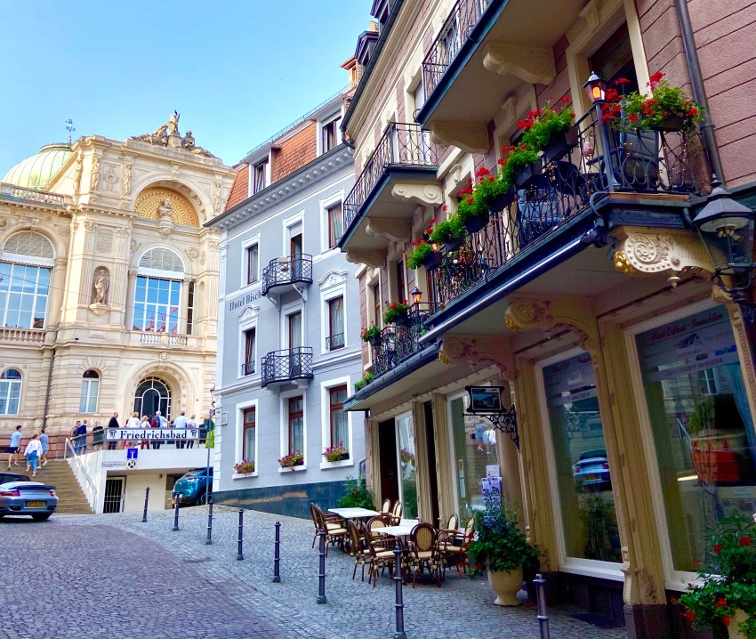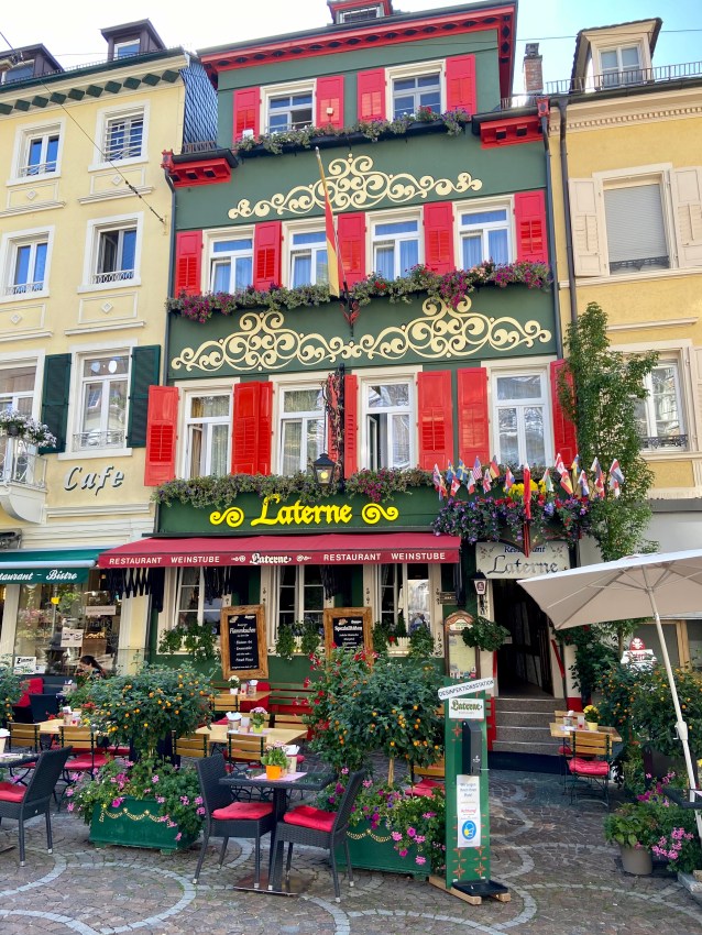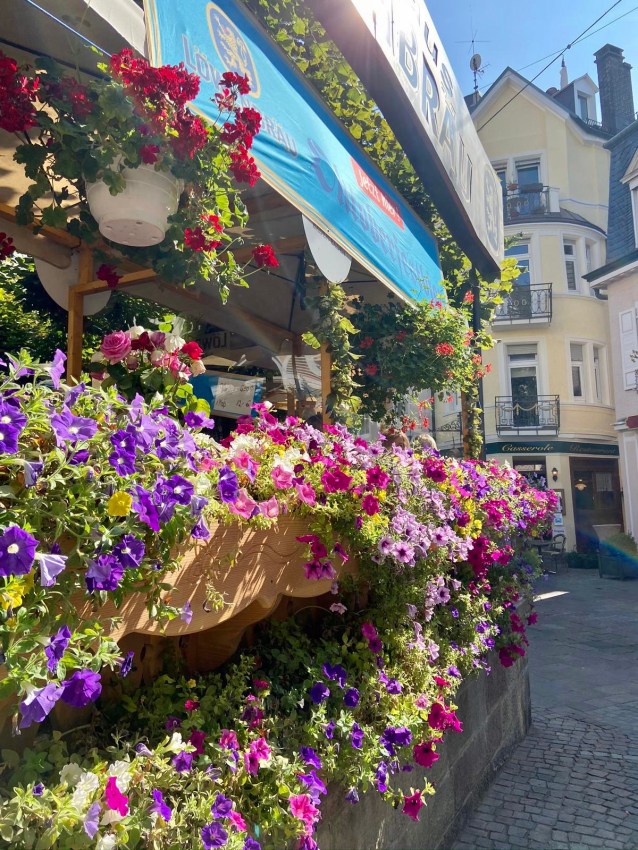 Saturday morning was a bit of a shock to the body since my normal bedtime is a boring 10:30. I somehow missed the hotel breakfast so I was on a mission to find some strong coffee and a bite to eat to get my day started. That was not hard to do as the streets are lined with cafes and bakeries. I met up with the girls and we strolled through the town taking in the beautiful buildings and pristine gardens crossing over the Oos River to see the stunning Theater and Kurhaus that hosts the Casino. We worked up an appetite walking and shopping and decided to eat at Leo’s for a nice long late lunch. We had a prime table on the patio where we ate, drank and talked under the cloudless blue sky. Leo’s is delicious and a perfect place to spend an afternoon enjoying the charm of Baden-Baden.